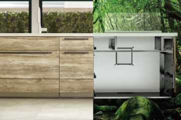 シンクのすぐ下に食器洗い乾燥機を設置するタカラスタンダード独自のプランを選べます。ワイドな幅で調理スペースの引出しを確保できるだけでなく、食器をラクにセットすることができる、間口の広い60㎝幅の食器洗い乾燥機をお選びいただけます。