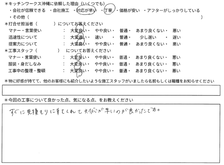 「すぐに見積もりに来てくれて対応が早かったのが良かったです。」