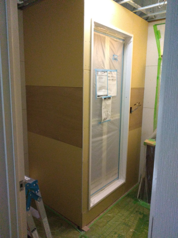 2.浴室を仕切る為の枠組みを設置。