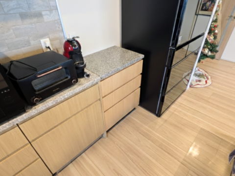 工事内容としては、既存の食器洗い乾燥機45cm(ディープタイプ)とIHクッキングヒーター60cmを撤去しまして、同じサイズ食器洗い乾燥機45cm(ミドルタイプ)・IHクッキングヒーター60cmサイズを新規に設置します。