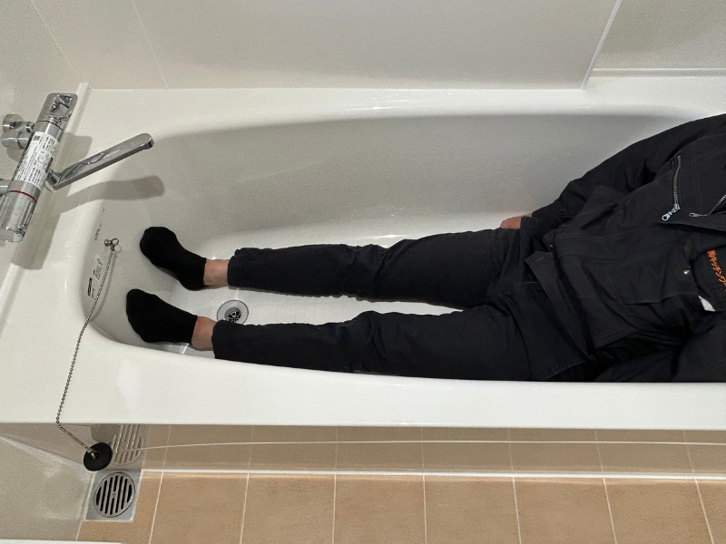 約180cmのスタッフが脚を伸ばしても余裕のある、広めの洋風バスを採用しました。