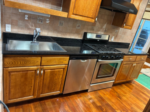 既存の食器乾燥機を撤去しBosch食洗機を設置、さらに天板には天然石を使用する事によって洗練された仕上がりになりました!