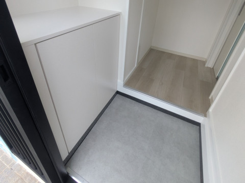 お客様のご要望で食洗機の面材はキッチンと統一感を出すためにアイカ製 メラミン化粧板AI1907KGを取り寄せて面材加工を行い設置しております。 |
