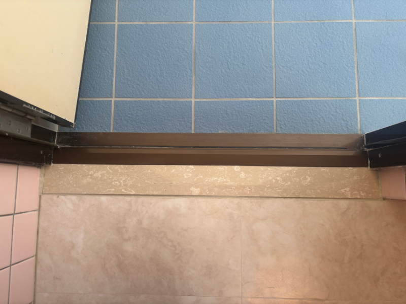浴室入口のサッシ下枠交換に伴い、床見切りには