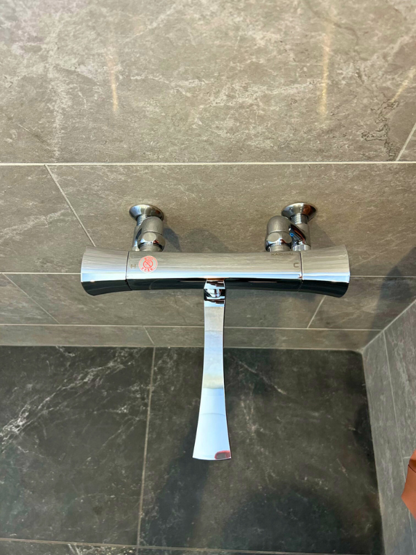 角のあるシルエットとメタリックな光沢が際立つデザインの浴槽水栓を採用しました。