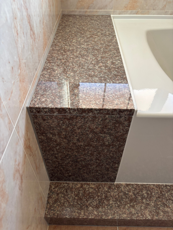 弊社石工場(中部大理石)でオーダー加工した御影石を施工。